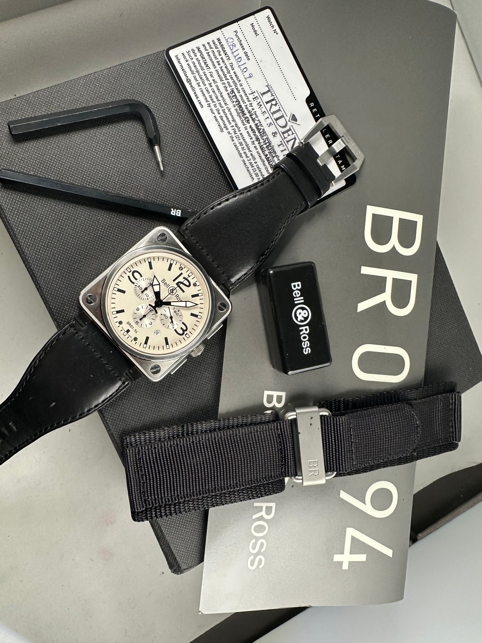 Bell & Ross BR01-94 white dial automatic chronograph.